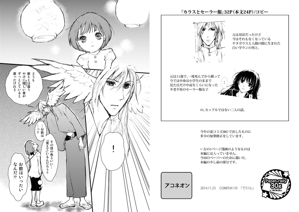 久々に出るCOMITIAで 久々に出すペーパーだったので、 むきになって1ページだけでもとにかく是が非でも 漫画(と言えるほどのものでなくても)を新しく描いて 入れてやろうとしていました。 COMITIA30周年記念の回だったので それに参加するためのマークが右下に入っています。
